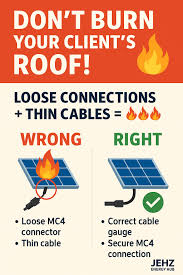 Always insist on solar-grade PV1-F cables and MC4-certified connectors. Never mix different connector brands — they do not mate properly, leading to arcing.